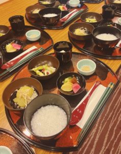 東京グランドホテルの五階にあります微笑庵で、 曹洞宗の禅の教えに触れ、座禅を経験し、朝粥をいただいて、続き薄茶を楽しみました。